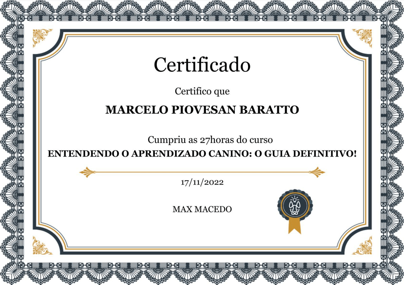 Com uma trajetória de excelência que une experiência militar e paixão por cães, sou Marcelo "MestreDog" Piovesan Baratto, um especialista em comportamento canino com credenciais únicas.